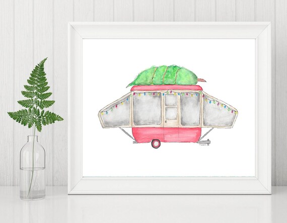 Retro Pop-Up Camper with Christmas Tree Art Print Camping | Etsy