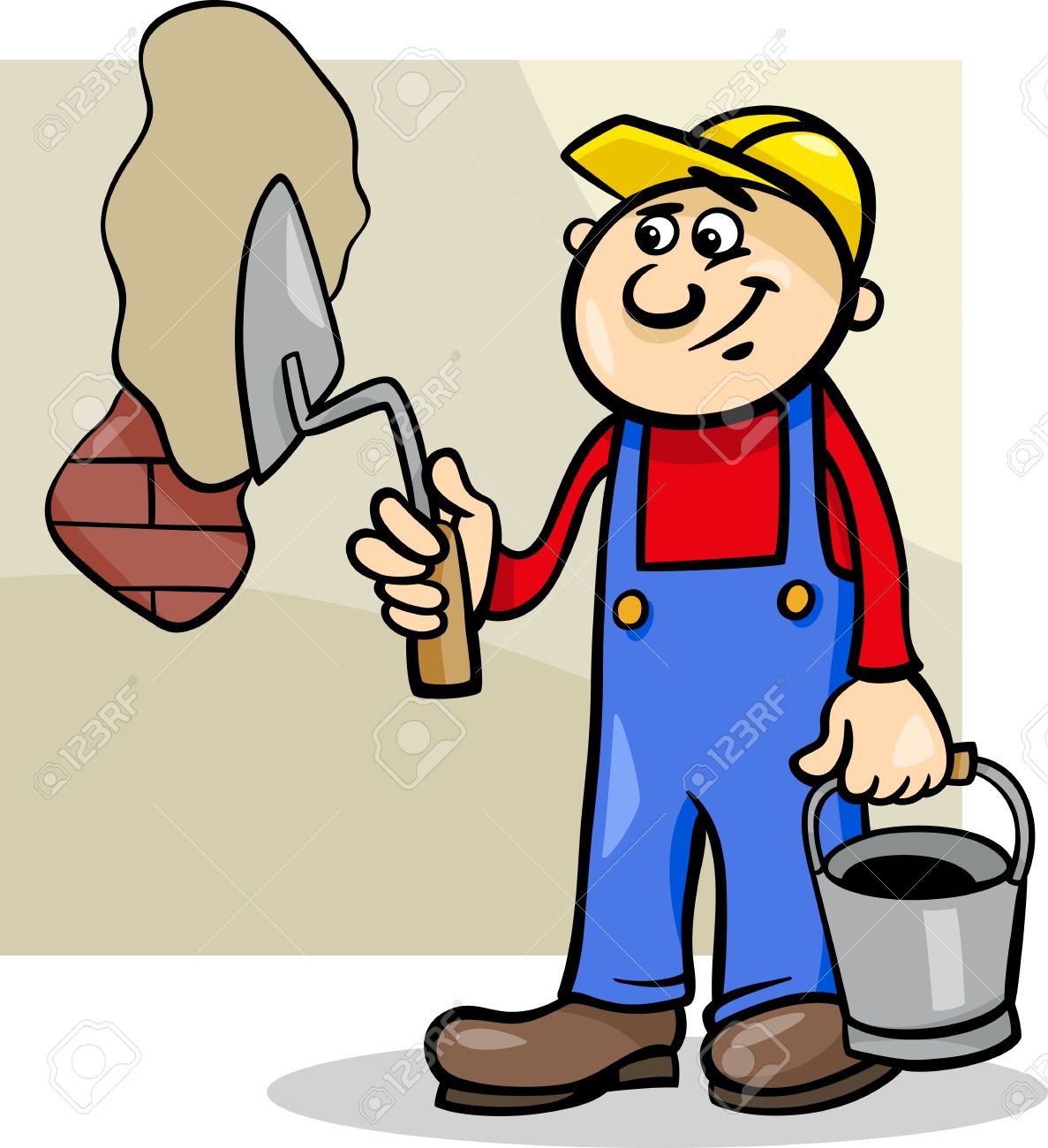 Ilustración De Dibujos Animados De Hombre Trabajador O Trabajador Con La Paleta De Yeso De La Pared De Ladrillo Ilustraciones Vectoriales, Clip Art Vectorizado Libre De Derechos. Image 20483509.